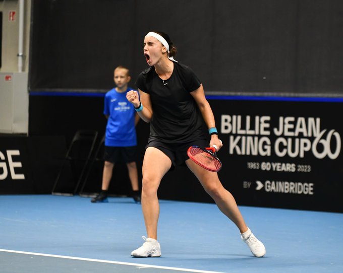 Збірна України вийшла вперед у матчі плей-офф Кубку Біллі Джин Кінг проти команди Нідерландів. Перше очко команді принесла дебютантка збірної Ангеліна Калініна. У першому в кар’єрі матчі за національну команду Ангеліна в двох партіях переграла Сюзан Ламенс, яка займає 218-ту сходинку поточного світового рейтингу. На перемогу в матчі Калініна витратила трохи більше години із чвертю ігрового часу.